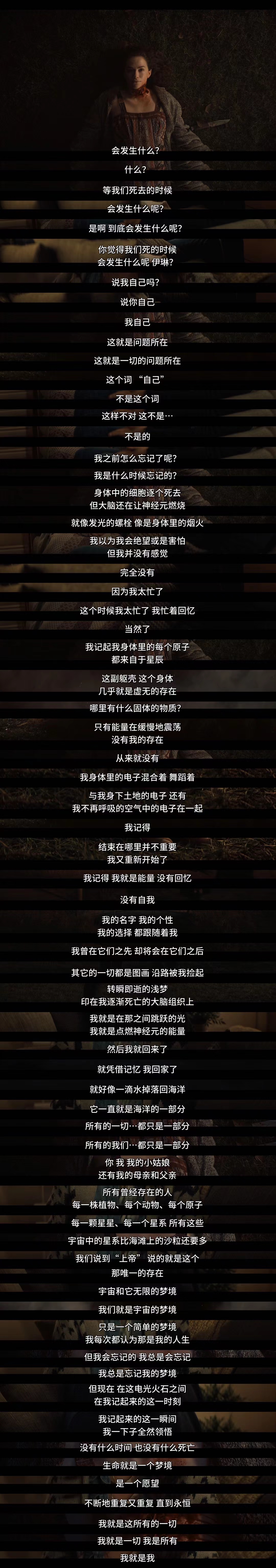 前三集看得颇费劲,台词晦涩。只是觉得当一个疯子遇到宗教,真的很可怕,多荒唐多错误的行为,都能被她拿信仰做幌子,最后演化成了一群疯子。 世人都想得到救赎,在至暗时刻把一切寄托给信仰,信仰救我们于水火,信仰让我们活下去,但信仰绝不能是偏执。